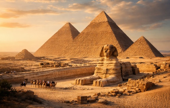 În apropierea capitalei Cairo, pe marginea deșertului, se ridică unele dintre cele mai impresionante construcții realizate vreodată de om: piramidele din Giza. Aceste monumente gigantice, construite în urmă cu peste 4.500 de ani, reprezintă unul dintre cele mai mari mistere ale civilizației antice.