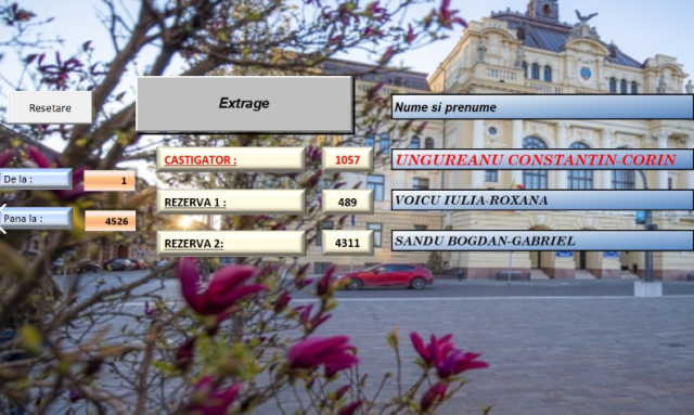 În urma extragerii computerizate, câștigătorul a fost desemnat Ungureanu Constantin Corin, domiciliat pe strada Dragoș Vodă din Oradea.