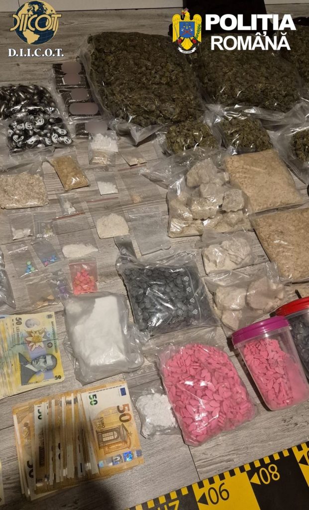 Pe parcursul investigațiilor, autoritățile au indisponibilizat aproximativ 500 de grame de substanțe interzise. De asemenea, în urma celor 51 de percheziții desfășurate în 17 și 18 martie în Oradea și în localitățile Paleu, Sânmartin, Gepiu, Sântandrei și Aștileu, au fost descoperite cantități semnificative de droguri: aproximativ 10 kilograme de 4MMC, 8 kilograme de canabis, 4,2 kilograme de hașiș, 5,1 kilograme de 2CMC, 5.750 de comprimate ecstasy, un kilogram de amfetamină, 1,1 kilograme de AB Fubinaca, 385 de grame de cocaină, 150 de grame de ciuperci halucinogene, 80 de timbre LSD și peste 180 de comprimate cu alprazolam. Totodată, au fost ridicate vape-uri cu THC, cântare de precizie, grindere, plicuri autosigilante, bani în lei și euro, precum și alte probe relevante.